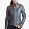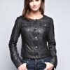 Designed to complement feminine curves, this sculpted black leather jacket provides warmth without compromising on style. Its shaped stitching adds definition and winter comfort.