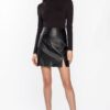 A fashion-forward skirt featuring a corset-inspired waist and front zipper. Its flared shape enhances femininity while maintaining a bold winter presence.