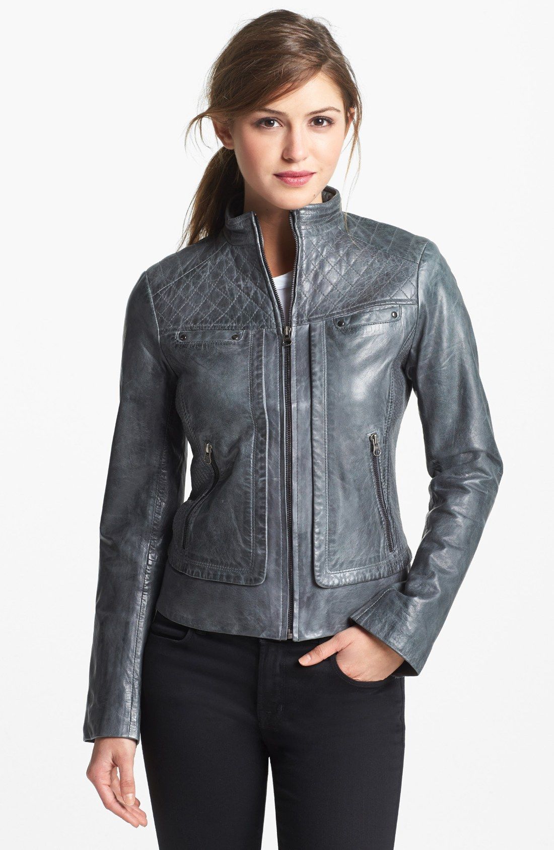 A stylish winter jacket crafted in a unique frost-grey tone. Its modern zipper lines, soft leather feel, and slim profile give it a contemporary fashion-forward presence.