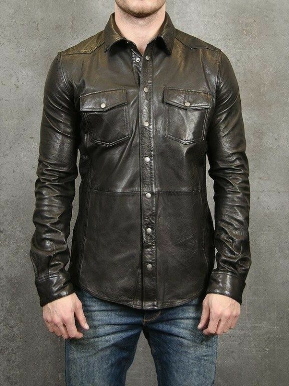Durable genuine leather shirt with a bold masculine design, perfect for everyday fashion and layering.
