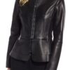 A trendy cropped winter jacket made from high-quality tan leather. Lightweight yet warm, with a modern fashionable finish.