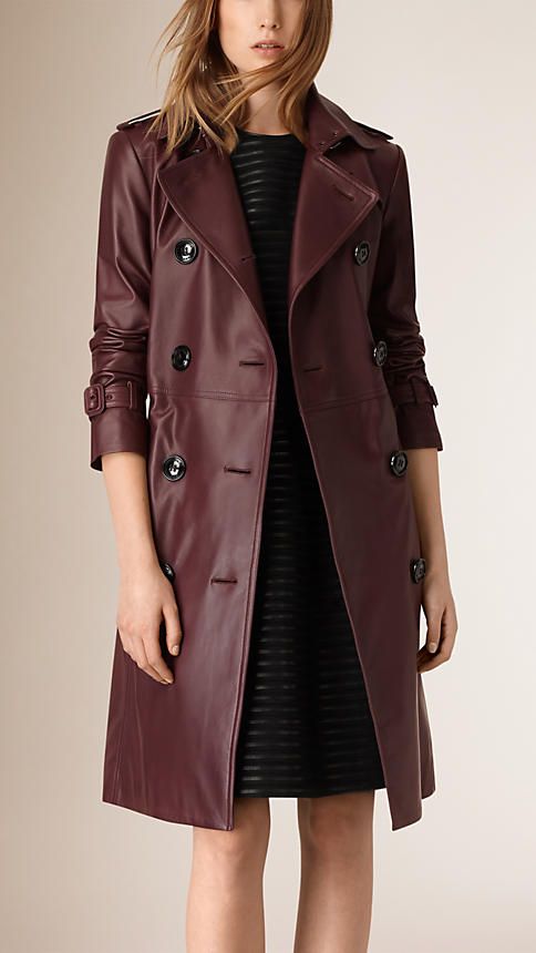 Sleek long leather coat with timeless winter style.