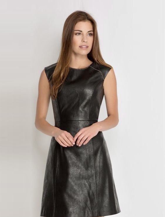 Full-length leather dress made with high-quality material.
